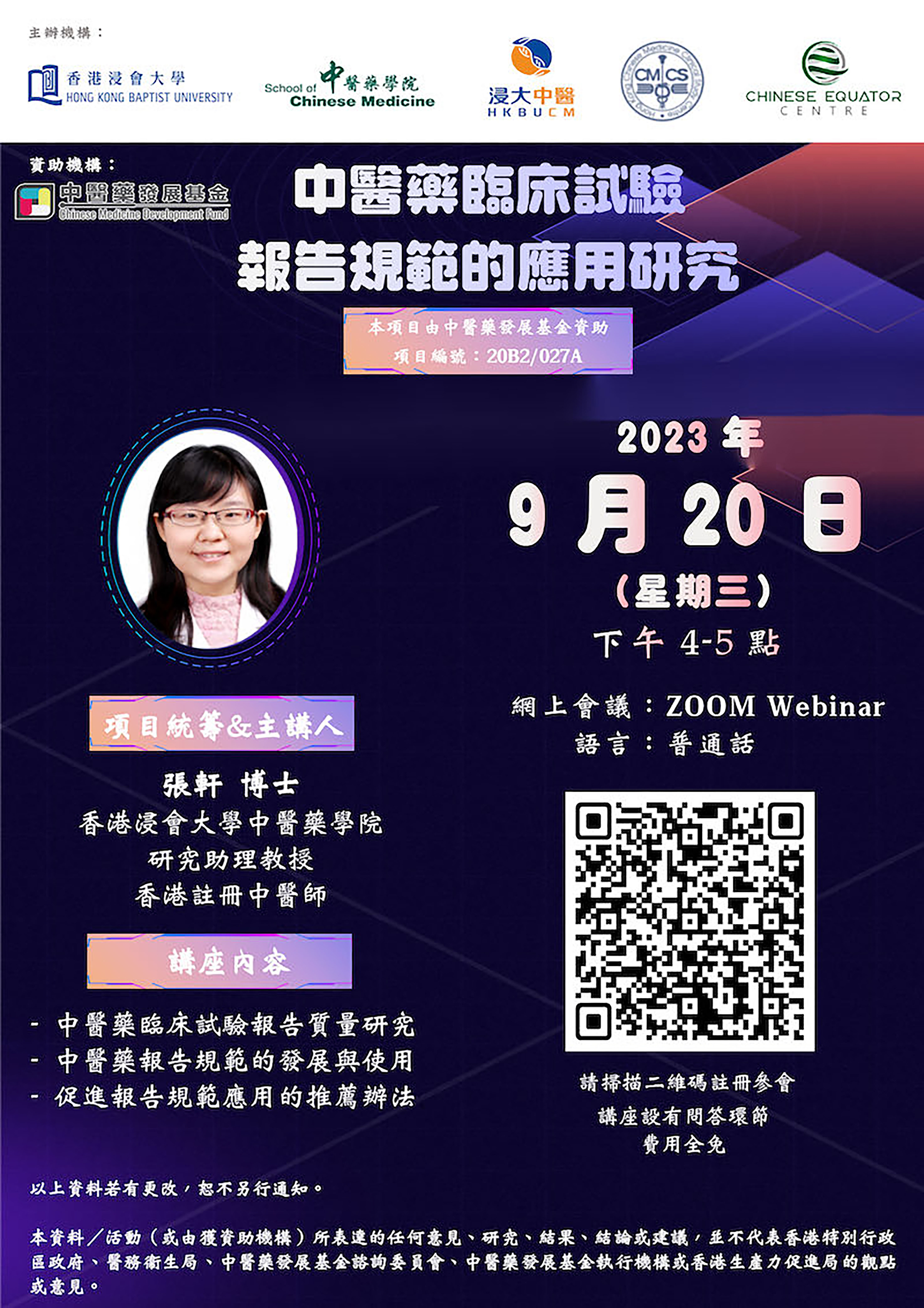 本項目將回顧中醫藥臨床試驗的報告質量,評估報告規範的影響作用,並開展中醫藥報告規範的應用現狀調查,分析存在的問題及其影響因素,以及研究促進中醫藥報告規範應用的有效策略,基於專家意見形成推薦辦法。